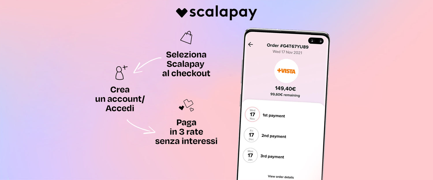 con Carta di credito, PayPal, Scalapay, Soisy e Klarna